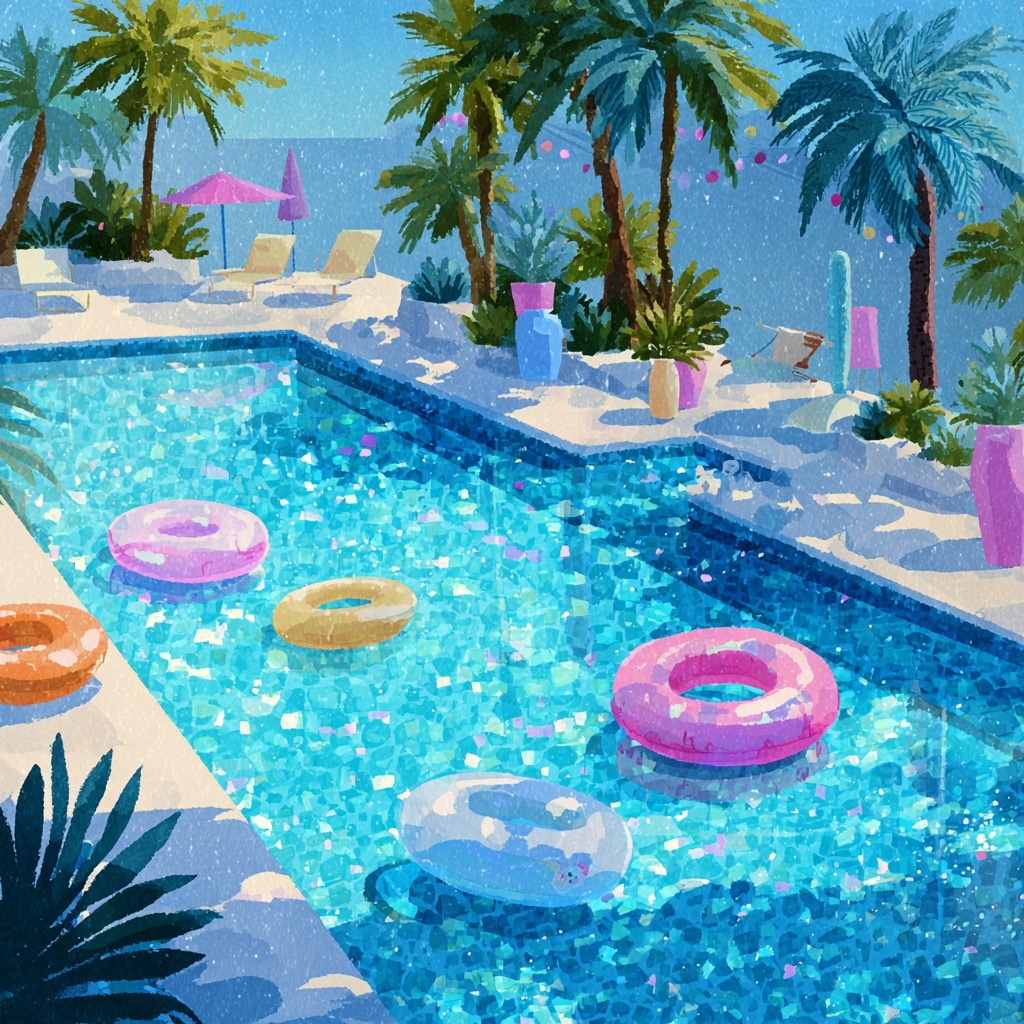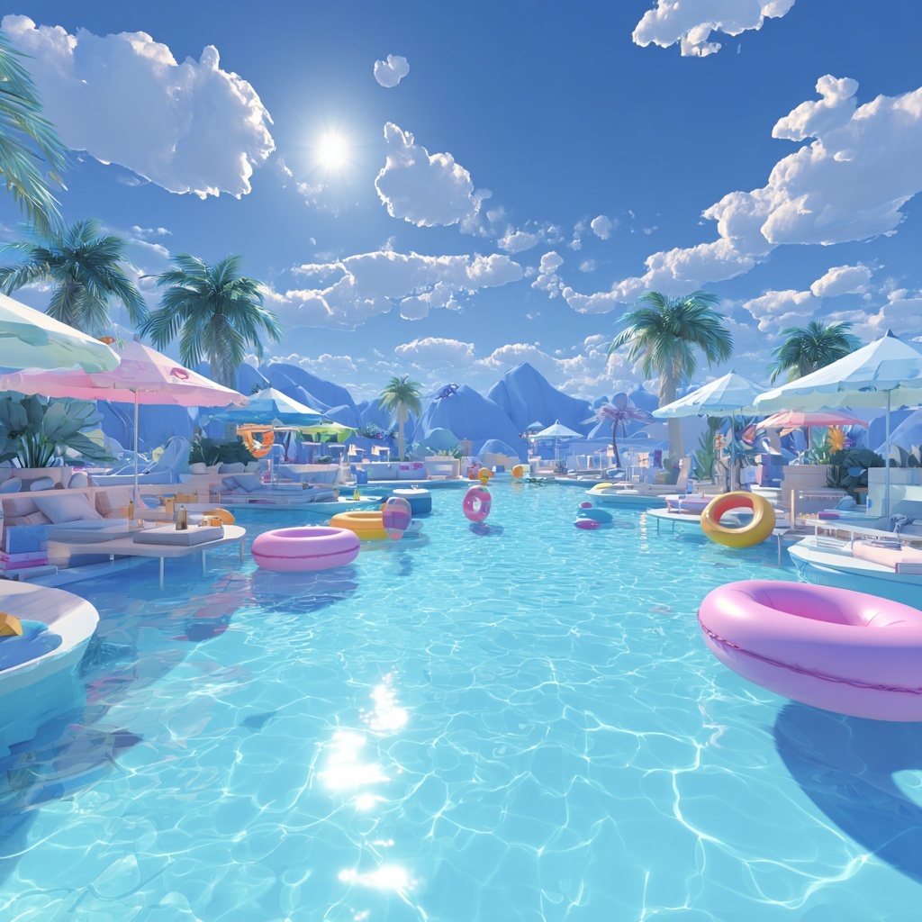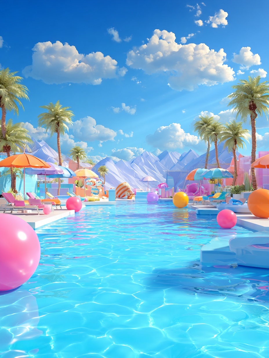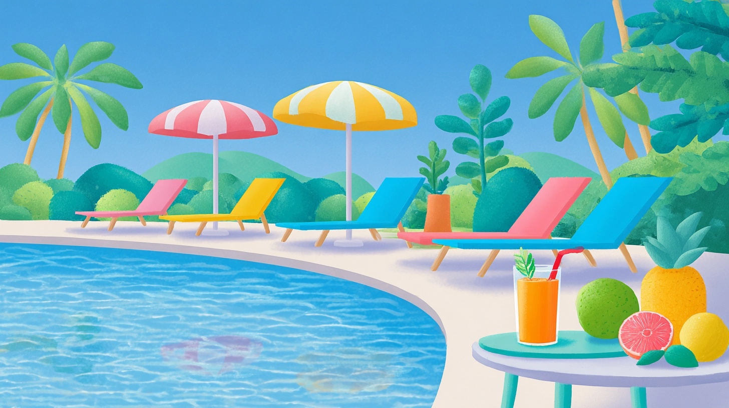 Sometimes, the best vacation is right in your own backyard. Our 2026 collection highlights the charm of the suburban pool party, complete with cartoon barbecue grills, beach balls, and sun loungers. For a more exotic feel, explore our tropical island pool scenes where palm trees lean over crystal-clear turquoise water. We have also included specialized artistic styles, from a minimalist flat-art pool look for modern web design to a detailed, textured watercolor style. Whether you prefer a modern infinity pool overlooking a cartoon city or a cozy pond-style swimming hole, every image is designed to be eye-catching and fun.