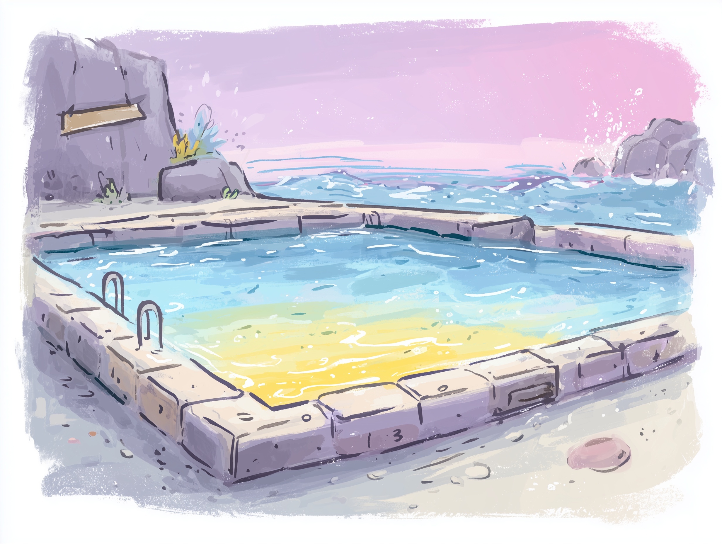 A cartoon pool is never complete without the fun that happens inside it. Explore our gallery of characters wearing colorful swim rings and the hilarious "big splash" moments from a diving board. If you are creating educational content for kids, we feature a dedicated series of safety-first illustrations, including a cartoon lifeguard station and children wearing bright orange arm floaties. For a more adventurous aesthetic, check out our winding water slide designs and the tropical-themed pools filled with giant inflatable flamingos and unicorns. These high-bitrate images ensure that every water droplet and sun flare looks incredibly sharp and professional.